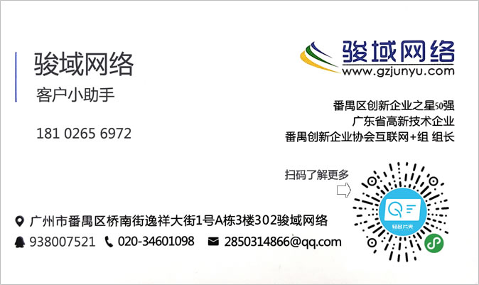 廣州駿域網絡科技有限公司成立于2005年,是一支由眾多具有多年實踐經驗的專業人士組成的高新技術團隊,專為企業提供網站建設、全網營銷、郵箱等服務,我們擁有嚴謹的程序開發人員、專業的美工設計、隨時為您效勞的售后服務人員,團隊人數達一百多人。目前我們已經榮幸的為廣州眾多知名企業提供了包括網站建設、手機網站、小程序、企業軟件開發等多種基于互聯網技術的服務。 通過長期積累,駿域網絡目前已經擁有50000多家客戶。